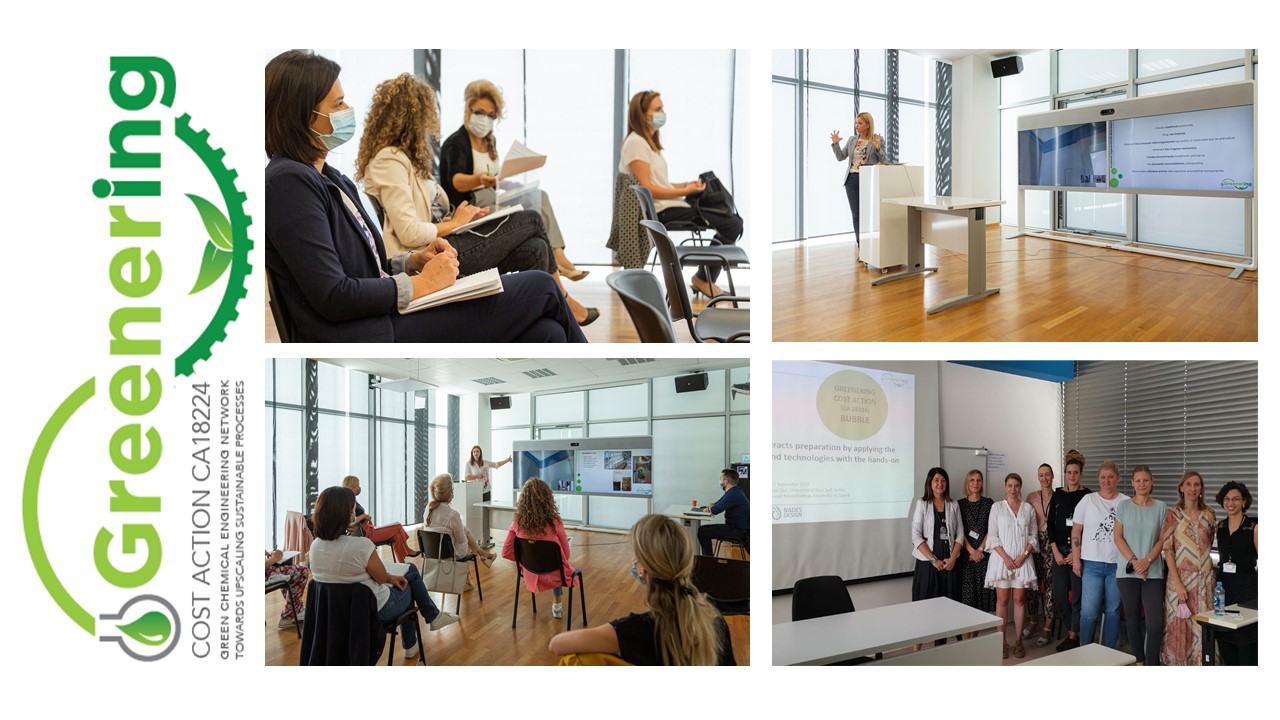 1st GREENERING (CA18224) BUBBLES, workshops on application of NADES, supercritical carbon dioxide, subcritical water and ultrasound in herbal extraction production were held in Novi Sad, Serbia, and Zagreb, Croatia, from 13th to 15th September 2021. GREENERING BUBBLES were devoted to industry. 10 companies participated the workshops.
